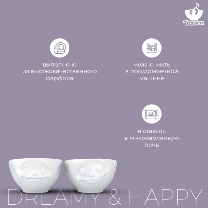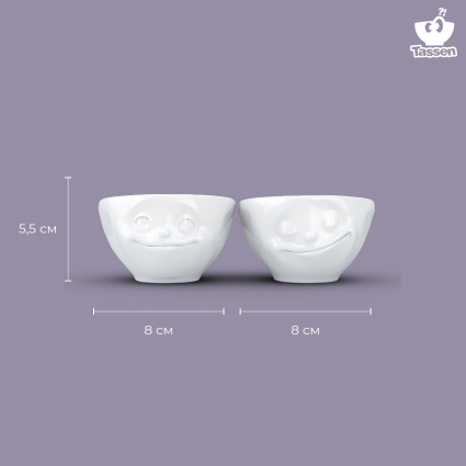 Оригинальные чаши с забавными рожицами отлично подойдут для подачи соусов и десертов. Их также можно использовать для подачи эспрессо.