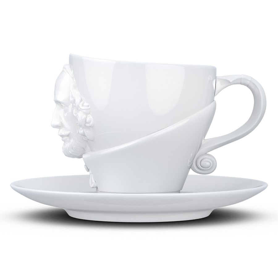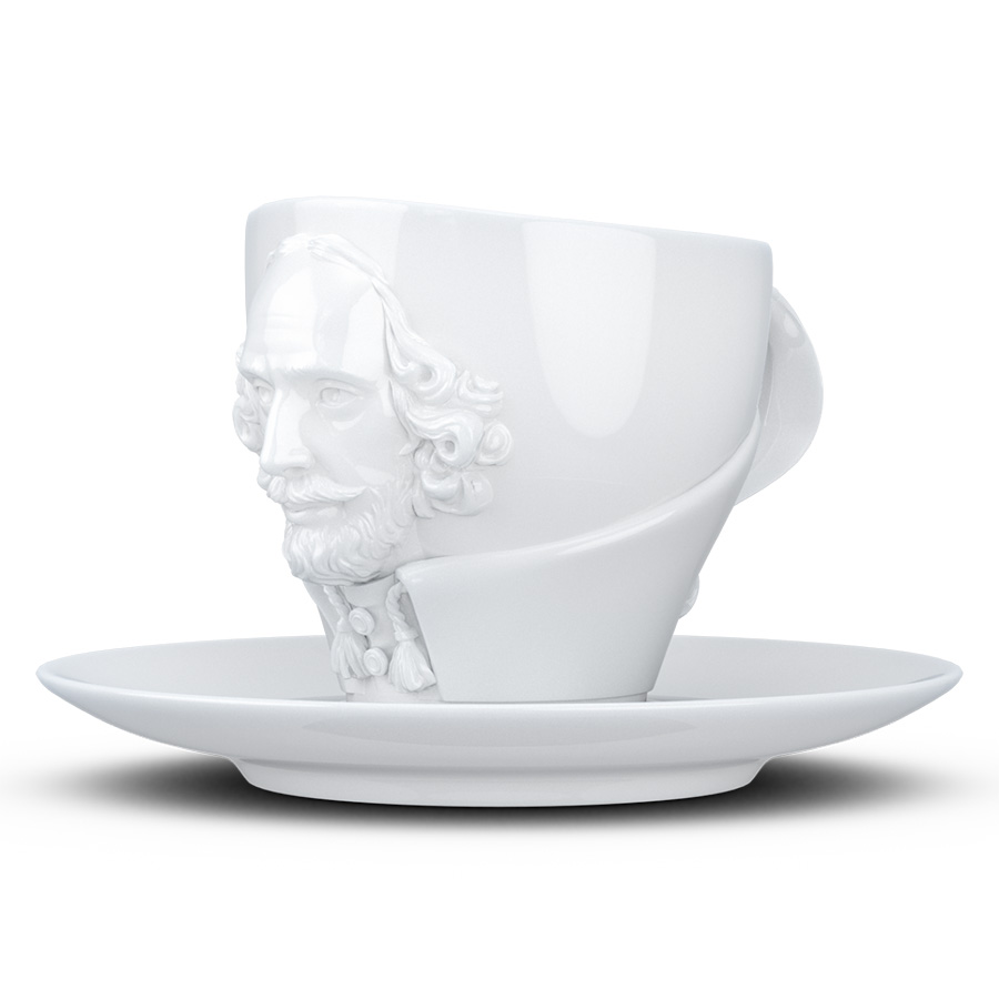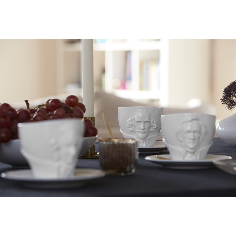 Чайная пара бренда Tassen из коллекции Talent станет центральной частью сервировки и превосходным подарком. Чашка украшена объемным изображением поэта Уильяма Шекспира.