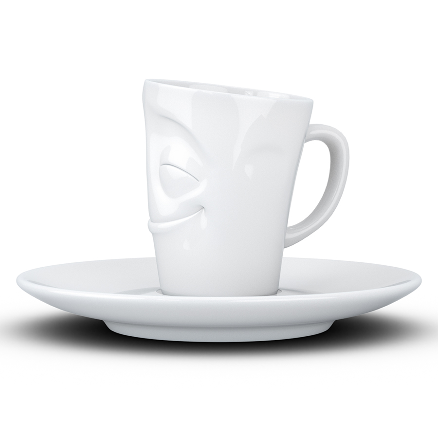 Кофейная пара из оригинальной чашки и блюдца отлично подойдет для подачи эспрессо.
