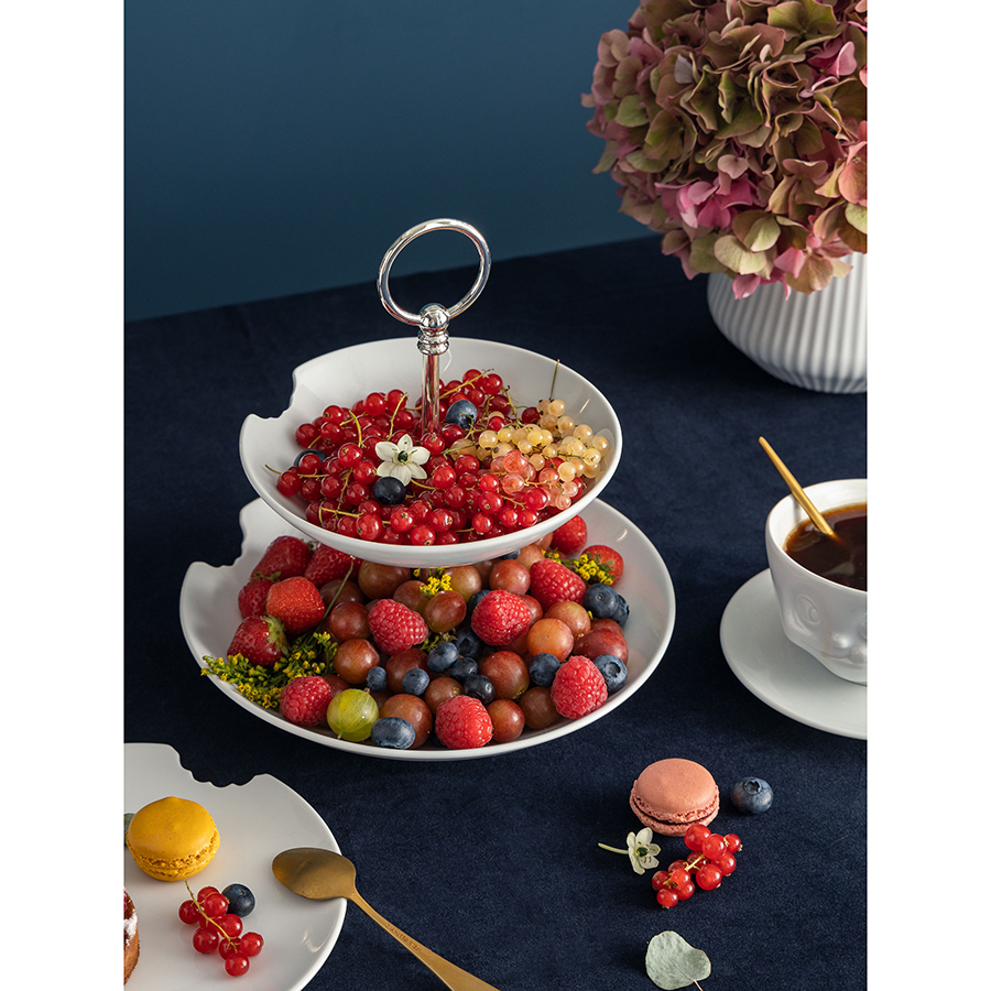 Этажерка в элегантном дизайне прекрасно подойдет для эффектной подачи фруктов и сладостей.